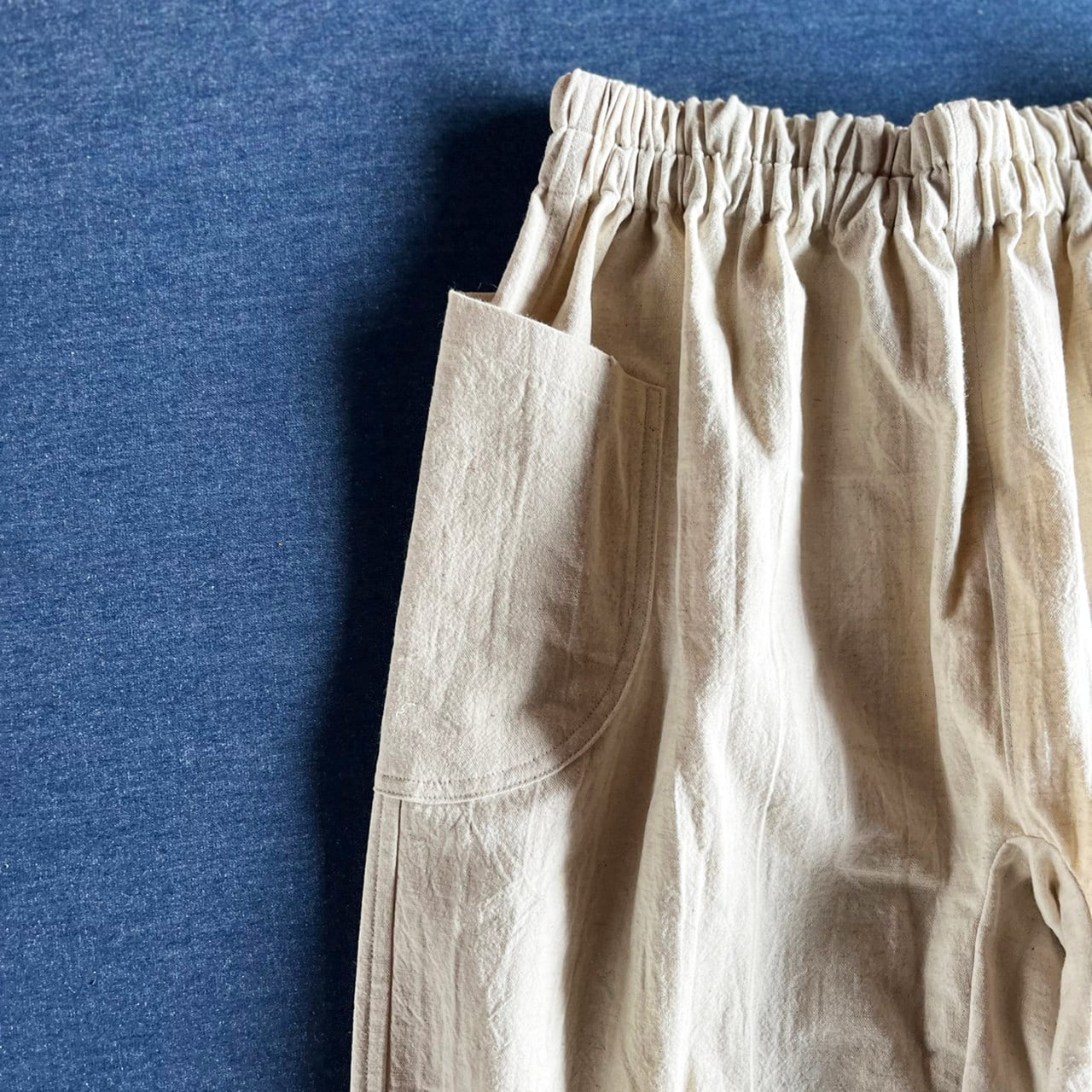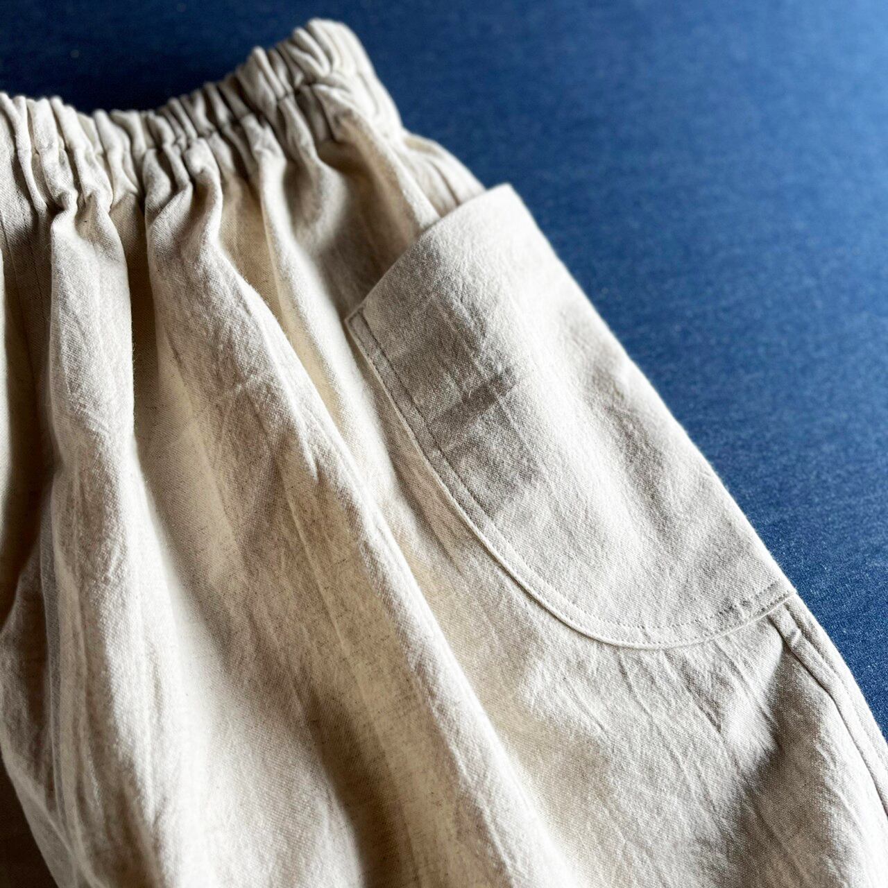 オフホワイトのコットンリネンもんもんぺです。