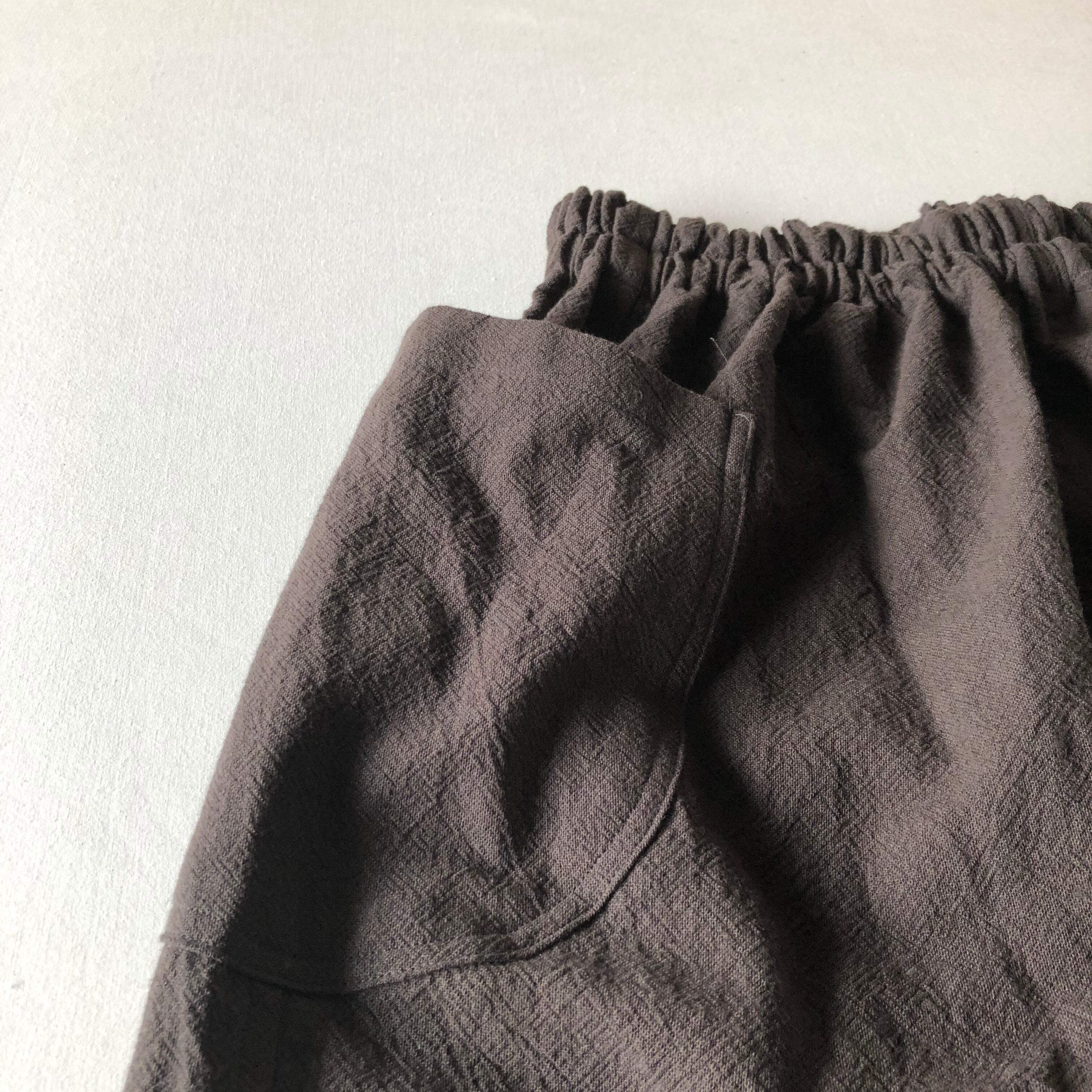 サイズ2 チャコールブラウン コットンリネン 綿85%麻15% もんもんぺ