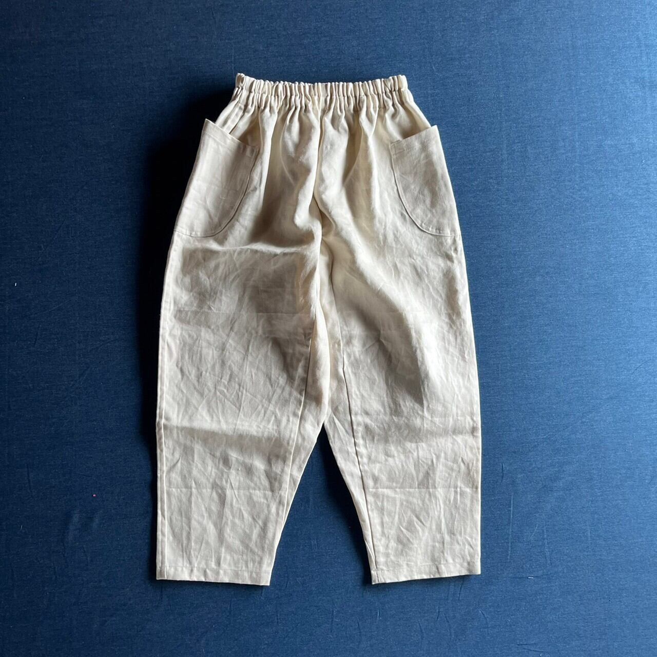 サイズ1 高級ホワイトリネン100%デニム もんぺパンツ