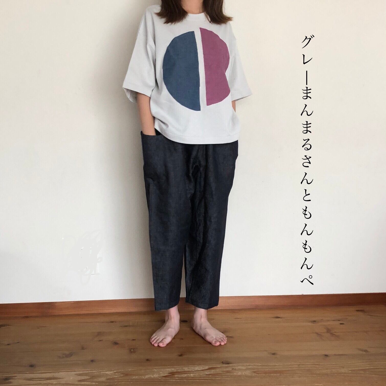 もんもんぺT レディース うすグレーまんまるさん